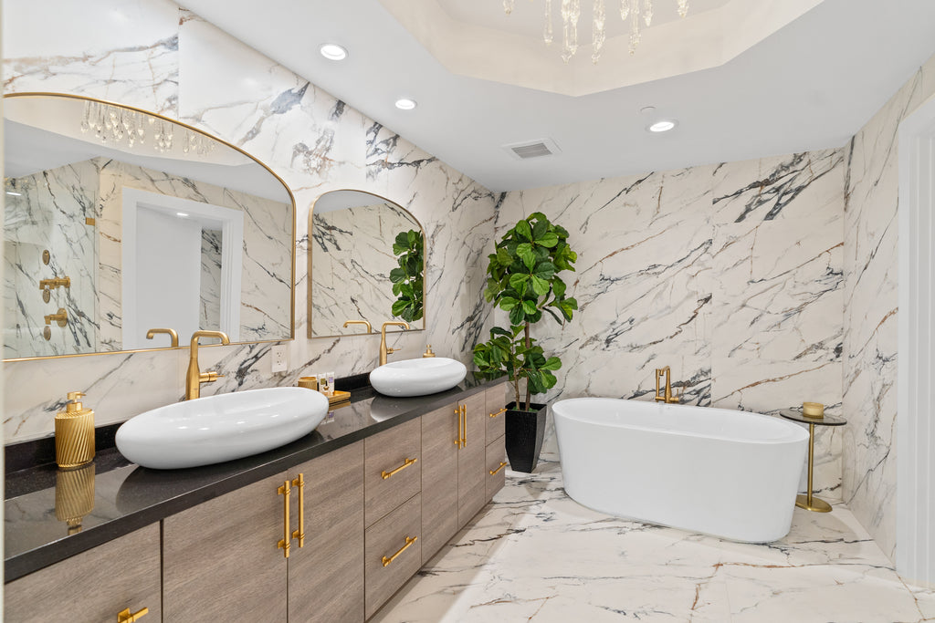 Porcelain floors extend throughout the entire home. Impact windows & doors, built-in walk-in closets, and refined finishes are found throughout. The primary suite enjoys direct water views, complemented by two generous balconies ideal for sunset enjoyment.